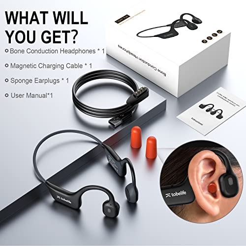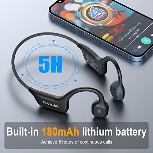 Tobelife Bone Conduction Headphones Bluetooth Wireless, Open Ear Bluetooth Bone Conduction Sport Headphones with Built-in Mic,Sweat Resistant Sports Earphones for Running and Workouts