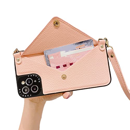 TOBILE Custodia a tracolla per iPhone 14, 14pro Max, 14 Plus, in pelle con tasca per carte e cordino, per iPhone 13Pro, rosa