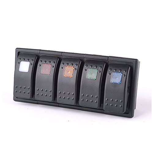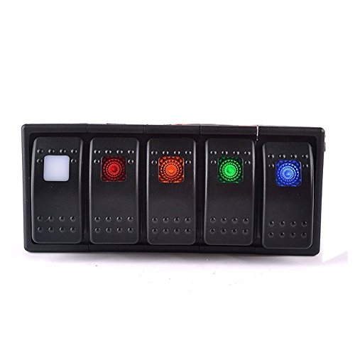 T Tocas (TM Impermeabile 5 Gang Rocker interruttori del Pannello con Protezione da sovracorrente, per 12v / 24v Marine Bus RV Caravan, IP66, 5 Colori