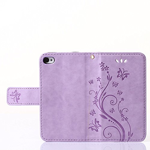 TOCASO - Custodia rigida a libro per iPhone 4/4S, con scomparto per documenti, soldi e carte, in similpelle PU, Similpelle, Light Purple,Schmetterling, Apple iPhone 4/4s