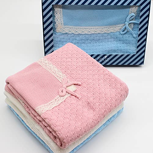 Colori naturali: la coperta in cotone per neonati può essere utilizzata sia per bambini che per bambine. È disponibile nei sottili colori unisex bianco, rosa cipria e blu. Lavare a mano.