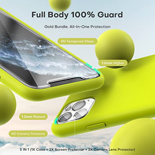 TOCOL Cover Compatibile iPhone 11 Pro max 5G, 2 Pezzi Pellicola Protettiva in Vetro Temperato 2 Pezzi Vetro Fotocamera Antiurto TPU Bumper Custodia Chiaro PC Rigida Protezione Case, Limone Giallo