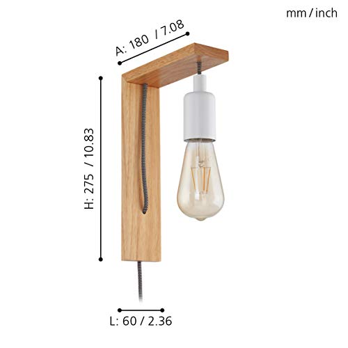 Eglo TOCOPIL Lampada da Parete in Legno, 10 W, Marrone/Bianco