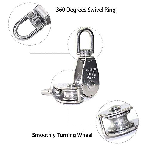【Ampia gamma di applicazioni】La nostra combinazione è molto adatta per il sollevamento di pulegge singole, pulegge di sollevamento in acciaio inossidabile 304, pulegge di trazione, pulegge trasversali, molto adatte per zaini, portachiavi, catene, corde, campeggio, escursionismo, pesca, animali domestici, attrezzatura interna ed esterna, Accessori fai da te, fitness, ruote sospese, arrampicata, fitness indoor e outdoor, ecc.