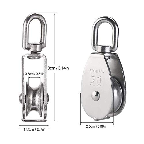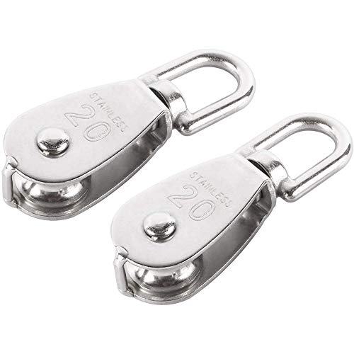 TOCYORIC 2 Pezzi 20 mm Puleggia Singolo Blocco, Puleggia in Acciaio Inossidabile, Carrucole in 304 Acciaio Inox Singola Puleggia Gru Girevole Gancio Singola Ruolo Puleggia Carico