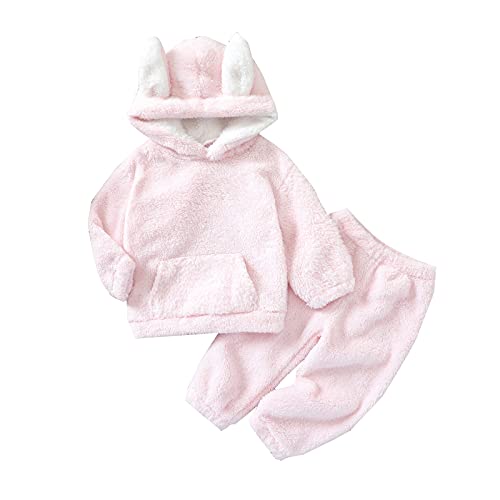 2PCs Toddler Baby Girl Clothes Set Felpa a Maniche Lunghe Bunny Pullover con Cappuccio Maglione Top Elastico in Vita Tinta Unita Pantaloni Lunghi Pantaloni Abiti Invernali (Rosa, 18-24 Mesi)