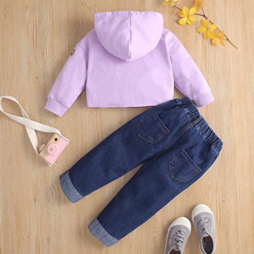 Toddler Neonate Completi Felpa con cappuccio in cotone a maniche lunghe Felpa Top Jeans strappati carini Pantaloni in denim per bambini Set Neonate Vestiti viola 90 18-24 mesi