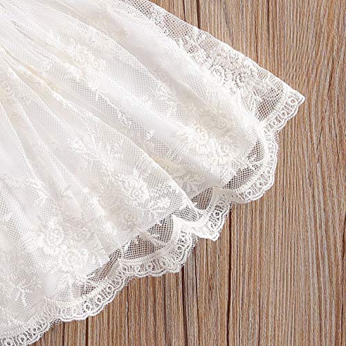 0-24 Mesi Toddler Baby Girl Pagliaccetto Tuta Collo Quadrato Senza Maniche Pizzo Piuma Increspatura Halter Fiocco Ragazza Tuta Abito da Principessa Tutu (Bianca, 0-6 Mesi)