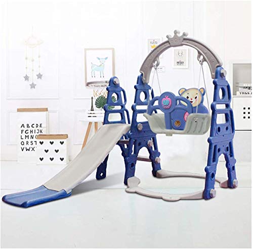 YHX 4In1 Toddler Slipping Climber And Swing Set, Kids Play Climber Slide Playset con Canestro da Basket, Pedale di Sicurezza per Baby Indoor Outdoor Backyard Toy,Blu