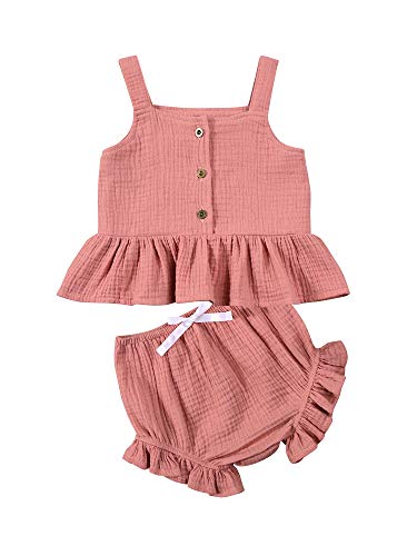 Toddler Baby Girl Summer Clothes Sleeveless Ruffles Button Shirt Tops+Shorts 2pcs Outfit Sets (Pink, 6-12 Months)
