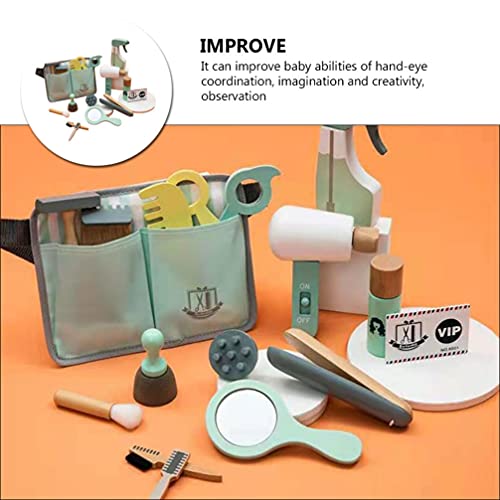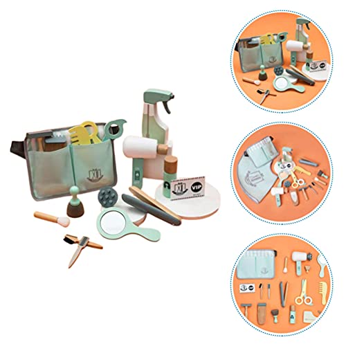 Toddmomy 1 Set di Legno Bambini Barbiere Giochi per Bambini di Simulazione Strumenti di Taglio di Classico Grooming Kit Barbiere Cassetta degli Attrezzi Hairdress Kit Kit