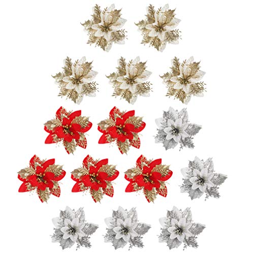 Toddmomy 15 Pezzi Decorazioni Natalizie Poinsettia Glitter Fiori Artificiali Natalizi per Ornamenti per Alberi di Natale