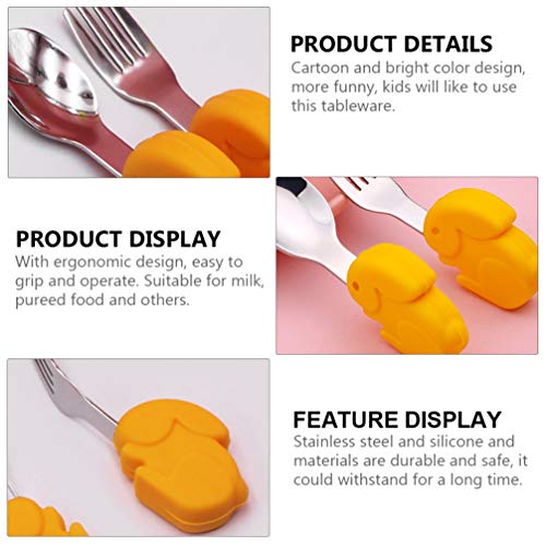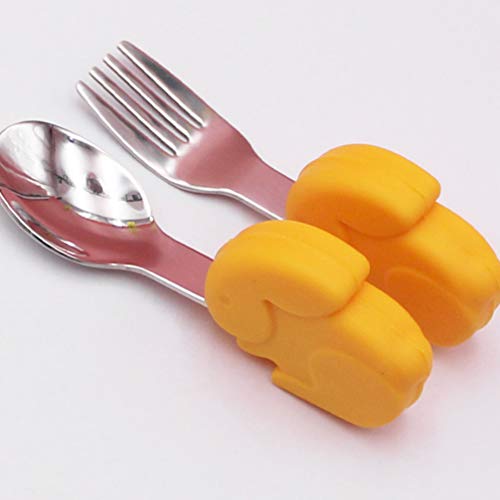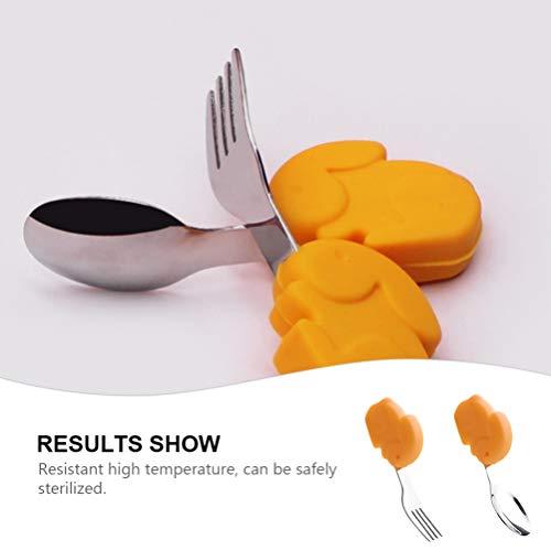 Toddmomy Stoviglie per Integratori Alimentari 2Pcs First Training Self Feed Baby Utensils Toddler Fork And Spoon Baby Utensils Set Easy Grip for Baby (Yellow)