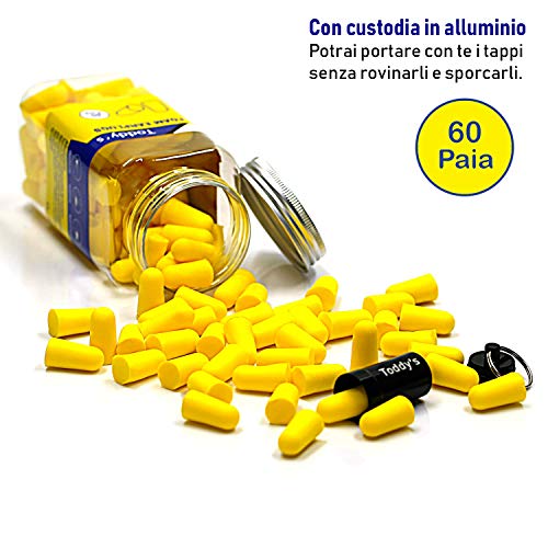 TODDY'S - 60 Paia Tappi Orecchie Per Dormire In Schiuma Foam 38dB - Tappi per Orecchie Antirumore - Tappi Per Orecchie Per Dormire E Per Lavoro