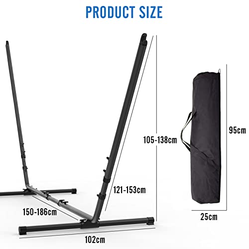 Todeco - Adjustable Hammock Stand, Camping Hammock Stand Only - Accessori: Amaca Non Inclusa - Dimensione: 296-380 x 107-132 x 100 cm - con Borsa da Trasporto