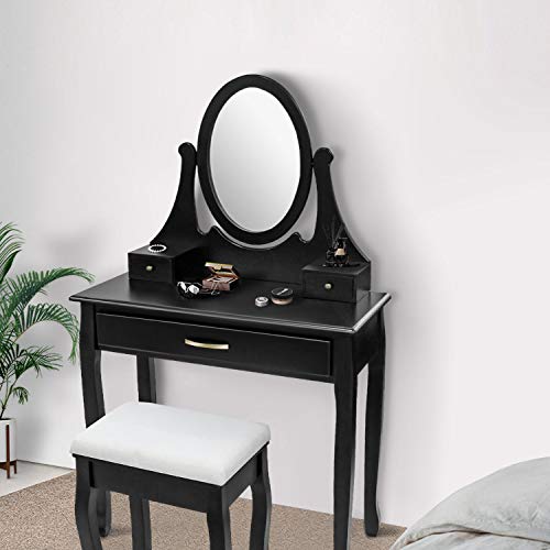 Todeco - Toletta Da Trucco, Tavolino Da Trucco - Materiale: MDF - Dimensione dello specchio: 35,1 x 50,0 cm - 3 cassetti, specchio ovale, Nero
