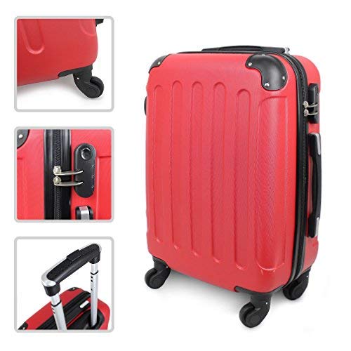 Todeco - Valigia A Mano, Bagaglio A Mano - Dimensioni (ruote incluse): 56 x 38 x 22 cm - Dimensione interna: 49 x 35 x 21 cm - Angoli protettivi, Bagaglio a mano 51 cm, Rosso, ABS