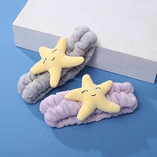 TODEROY Fascia per capelli in morbido pile corallo con turbante e fiocco, fascia per capelli per il lavaggio del viso, doccia spa, diversi stili di trucco (stelle marine)