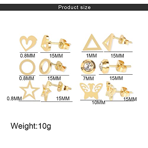 TOEECY 12 Paia Orecchini a Bottone in Acciaio Inossidabile Ipoallergenico Piccoli Cartilagine Orecchini Donna Ragazze Triangolo Stella Farfalla Stud Piercing Orecchio Set Gioiell