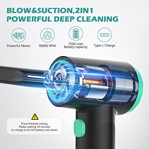 Design Portatile E Batteria A Lunga Durata: Elettrico Rimuovi Polvere Aria Compressa Senza Fili è dotato di due batterie al litio da 3500 mAh (7000mAh) integrate, che offrono agli utenti una soluzione di pulizia portatile. La comoda portabilità consente di utilizzare il prodotto ovunque e in qualsiasi momento, senza preoccuparsi dei limiti delle prese di corrente per le attività di pulizia.