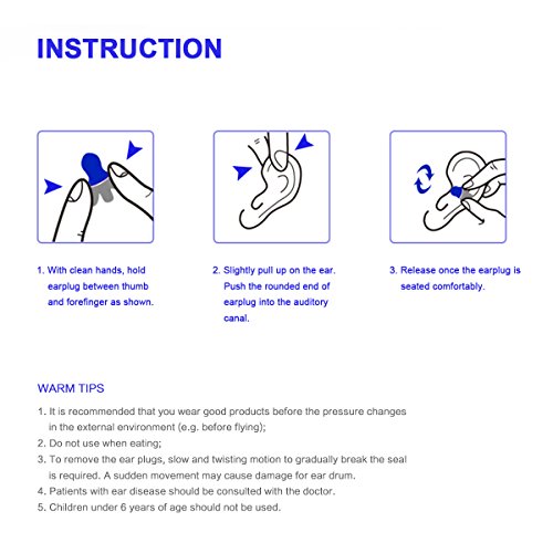Toennesen aereo Tappi per le orecchie silicone Rumore riutilizzabile impermeabile e NRR 28 dB Protezione acustica Ideale per decompressione dell'aeroplano Evitare l'acufene Consegnato con per adulti