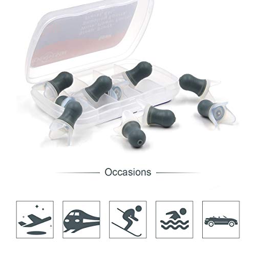 Toennesen aereo Tappi per le orecchie silicone Rumore riutilizzabile impermeabile e NRR 28 dB Protezione acustica Ideale per decompressione dell'aeroplano Evitare l'acufene Consegnato con Grigio
