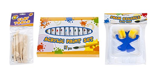 Set completo: ruota da vasaio, 2 attrezzi per modellare, 2 X 450 G, 6 colori, pennelli e affini.