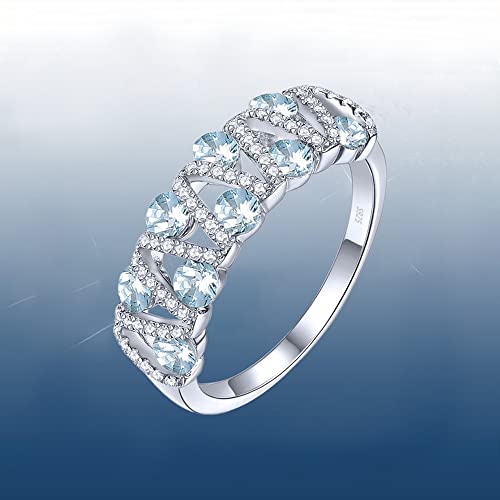 TOFBS Argento Sterling 925 Anelli per Donna e Ragazze Anello Anello con Pietra Preziosa Acquamarina Fedine Fidanzamento Coppia,Anniversario Matrimonio Promessa Sposa Band Anelli Donna Set (8)