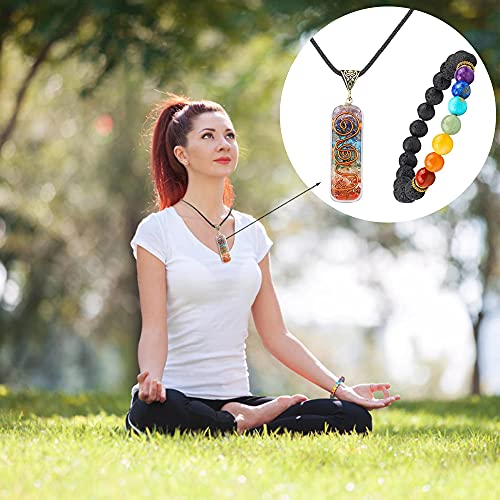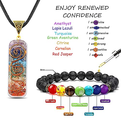 TOFBS Collana con Ciondolo in Cristalli Chakra & Cristalli Chakra Pietre Bracciale Set Collana da Donna Pendente Orgonite Reiki per Guarigione Energetica Meditazione Yoga