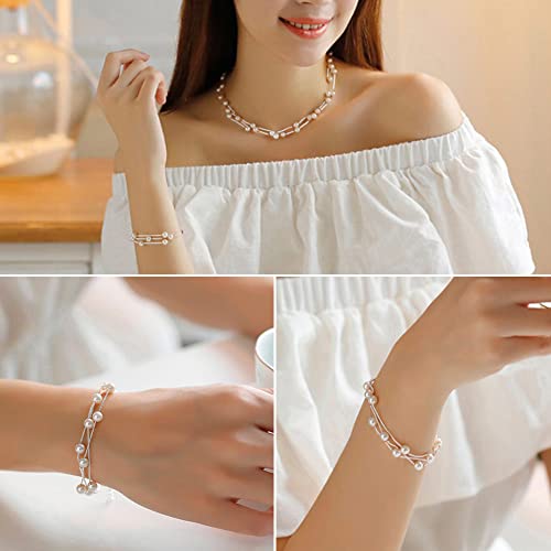 TOFBS Collana di Perle d'Acqua Dolce Donna Sposa Collana e Bracciale Parure Gioielli Set Perle Rotonda Chocker Regali di Fidanzamento Damigella d'Onore Anniversario Gioielli (Argento)