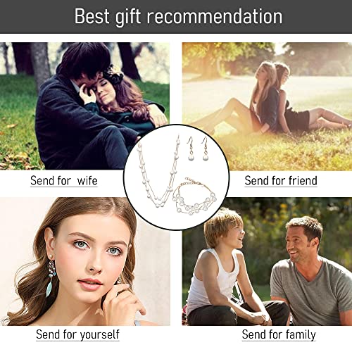 SELEZIONE DI REGALI IDEALI DI GIOIELLI Set di gioielli di perle confezionati in modo squisito, il tuo compleanno, matrimonio, anniversario, festa della mamma, giorno del Ringraziamento, Natale, Capodanno, San Valentino è il migliore per te, madre, figlia, fidanzata, damigella d'onore, fidanzata regalo. Il set di collana di perle è ottimo anche per bomboniere, damigelle d'onore e oggetti di scena per matrimoni.
