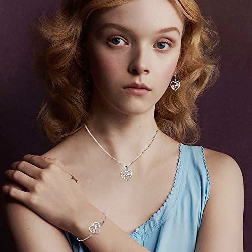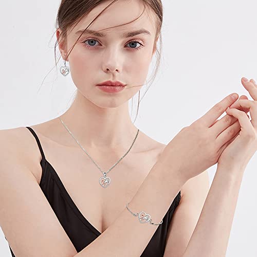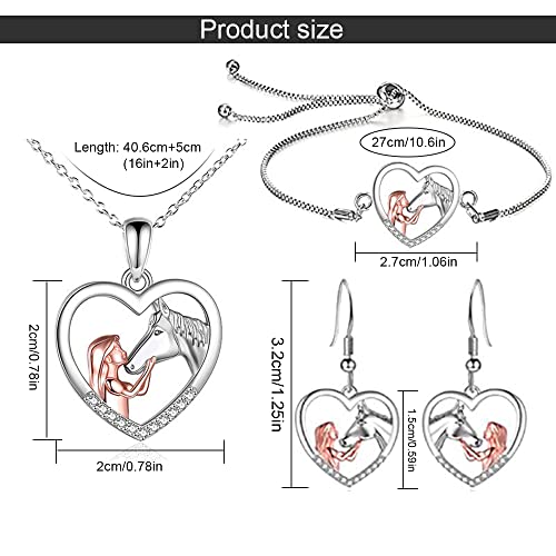 TOFBS Collana Ragazza e Cavallo Orecchini e Bracciale Parure Gioielli Pendente Cuore in Argento Collana Set Regali per Donna Ragazze