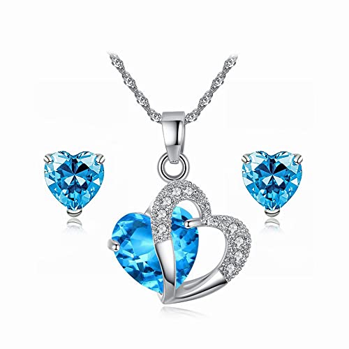 TOFBS Cuore Parure Gioielli per Donna Ragazze Collana e Orecchini Set Zirconi Cubici Collana da Donna Gioielli Set (Blu)