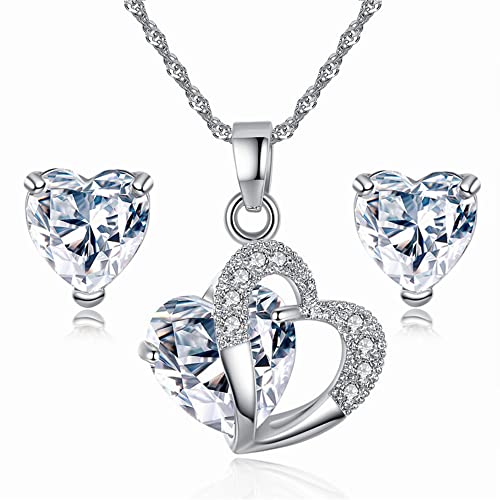 TOFBS Cuore Parure Gioielli per Donna Ragazze Collana e Orecchini Set Zirconi Cubici Collana da Donna Gioielli Set (Bianco)