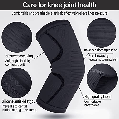 ♂【DESIGN ERGONOMICO E MULTIUSO】Le ginocchiere compressione ergonomiche offrono comfort, flessibilità e massima durata per tutto il giorno. Le ginocchiere possono fornire un supporto naturale e confortevole e una pressione efficace durante l'esercizio, adatte per corsa, sollevamento pesi, baseball, basket, calcio, golf, palestra, tennis, pallavolo, golf, ciclismo, escursionismo, alpinismo e altri sport!