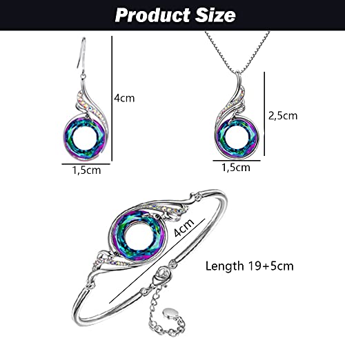 TOFBS Set Di Gioielli, Orecchini di collana con bracciale a gradiente di cristallo colorato di pavone,Gioielli Donna Regalo Originale per Lei Mamma Moglie Fidanzata Compleanno Anniversario (Verde)