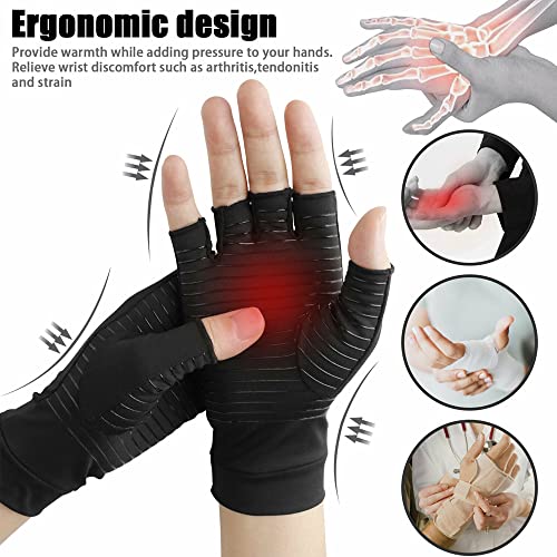 TOFBS 1 Paio Rame Infuso Guanti a Compressione per Artrite, Guanti Senza Dita per Uomo Donna, Guanti Artrite per Alleviare Reumatismi, Artrosi, Artrite, Tendinite, Sindrome del Tunnel Carpale (L)