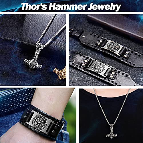 TOFBS Martello di Thor Collana Viking Uomo Bracciale Vichingo Mjolnir Ciondolo Acciaio Inossidabile Braccialetto Pelle Martello di Thor Ciondolo Vegvisir Bracciale Gioielli Vichinghi (Argento)