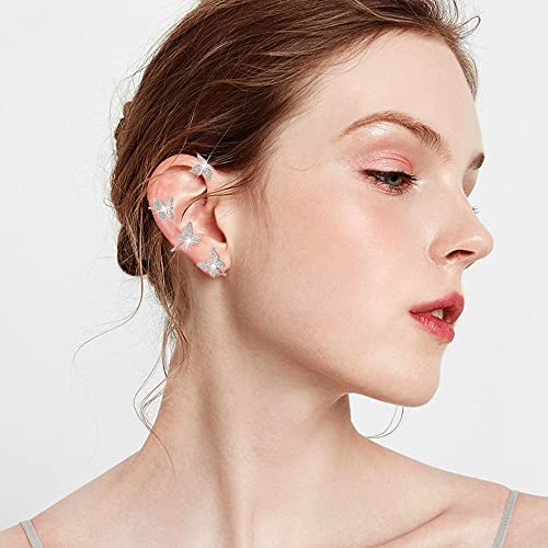 TOFBS Orecchini a Farfalla Con Zirconi Scintillanti, Orecchini a Farfalla Con Zirconi Senza Bisogno Di Forare Le Orecchie, Orecchini a Farfalla Con Zirconi,per l'orecchio per donne e ragazze (Argento)