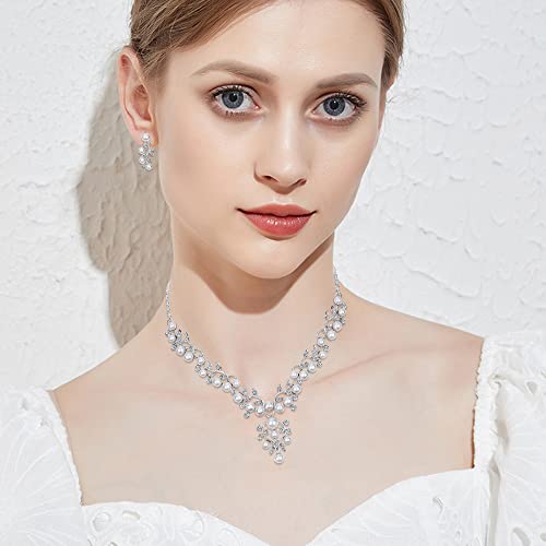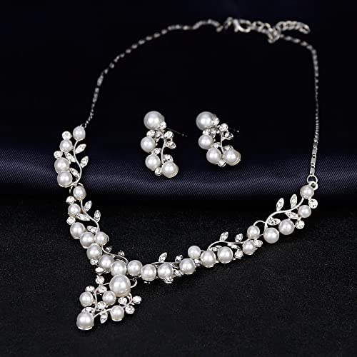 TOFBS Parure Gioielli Sposa Perle Parure Gioielli per Donna Ragazza Collana e Orecchini Set Collana di Perle Gioielli Sposa Set Matrimonio Fidanzamento Ballo Studentesco Festa (#2)