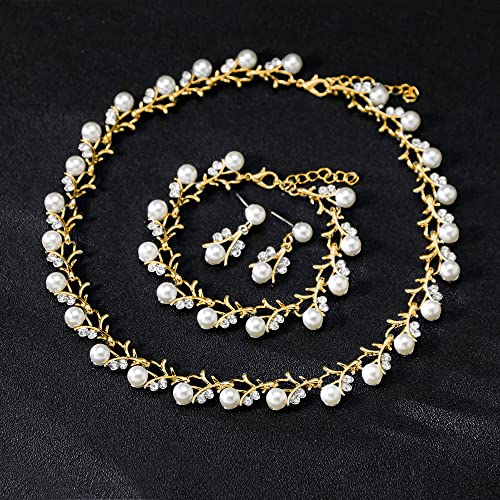 TOFBS Perle Parure Gioielli per Donna Ragazza Placcato Argento Collana Orecchini e Bracciali Set Collana di Perle Gioielli Sposa Set Festa Compleanno Anniversario Natale San Valentino Regali (Set 1#)