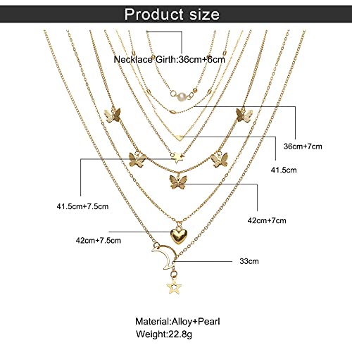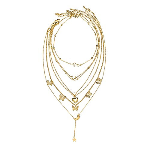 TOFBS 6 Pezzi Multistrato Collana per Donna Ragazza Collana con Pendenti Punk Gothic Choker Catena Clavicola Lunga Ciondolo Girocollo Catena Set Luna Stella Catena Clavicola Set (Oro)
