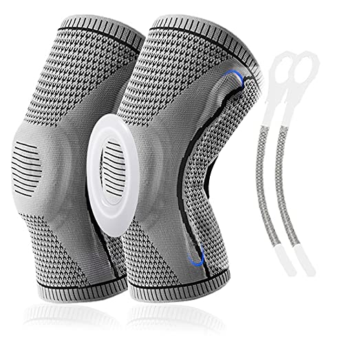 TOFBS Tutore Ginocchio Ginocchiera con Stabilizzatori Laterali e Silicone Anello tampone Lesioni al Menisco Artrite Infortunio Sportivo (Grigio, M)