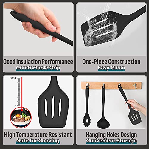 TOFFCAEA 8 Pezzi Cucchiai da Cucina Silicone, Utensili da Cucina in Silicone Kit, Antiaderente Strumento di Cottura Termoresistenti Professionali