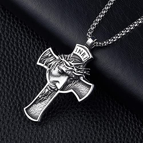 TOGGA Collana con Ciondolo a Croce di Gesù in Acciaio Inossidabile Vintage Collana con Ciondolo a Forma di Croce di Gesù da Motociclista da Ragazzo. Regalo di Gioielli con Talismano