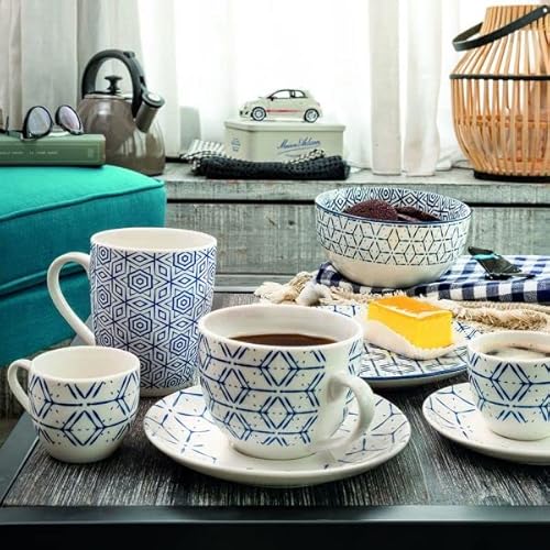 Confezione composta da sei tazzine da tè da 270 cc e da sei piattini coordinati
