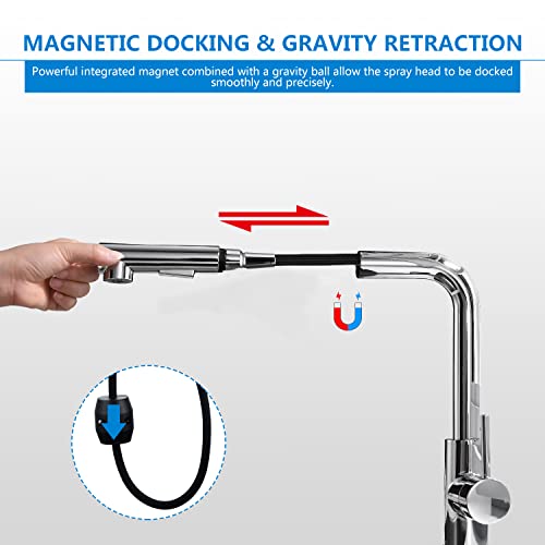 Rubinetto da cucina a bassa pressione estraibile: il rubinetto Tohlar a bassa pressione ha una porta standard da 3/8 pollici, rubinetto a bassa pressione con 3 connettori e con sfera di gravità di ritorno naturale, molto durevole. Tutti i raccordi sono inclusi, non è necessario un idraulico e una donna può installarla autonomamente in 20 minuti.