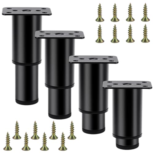 FACILE INSTALLAZIONE: la confezione include 4 gambe per mobili e 16 viti di montaggio. Queste gambe per mobili regolabili sono dotate di 4 fori preforati. Posiziona la piastra di montaggio della testata regolabile in altezza delle gambe del mobile nel punto in cui desideri installarla, allinea i fori e stringi le viti per una facile regolazione dell'altezza ruotando.