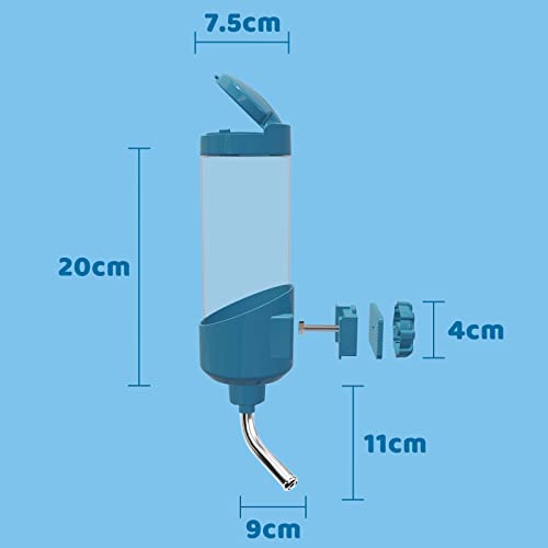 TOKAYIFE Bottiglia d'acqua per animali 680ml Borraccia cane Bottiglia sospesa per animali Fontanella a gabbia Dispenser acqua Beverino Coniglio Cane Gatti Coniglio (Blu)