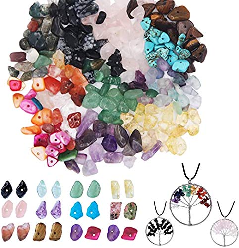 Totalmente 1323 pezzi di perline di pietra con chip irregolari includono 550 pezzi di perline di pietra irregolari colorate (24 colori / 50 pezzi), 50 pezzi di anelli di salto aperti, 20 pezzi di clip di aragosta, 50 pezzi di perline con foro. 1 pezzo di filo di cristallo di 0,8 mm di diametro, 1 pezzo di filo elastico di 1 mm di diametro di cristallo, 1 pezzo di linea anelastica di 0,5 mm di diametro.